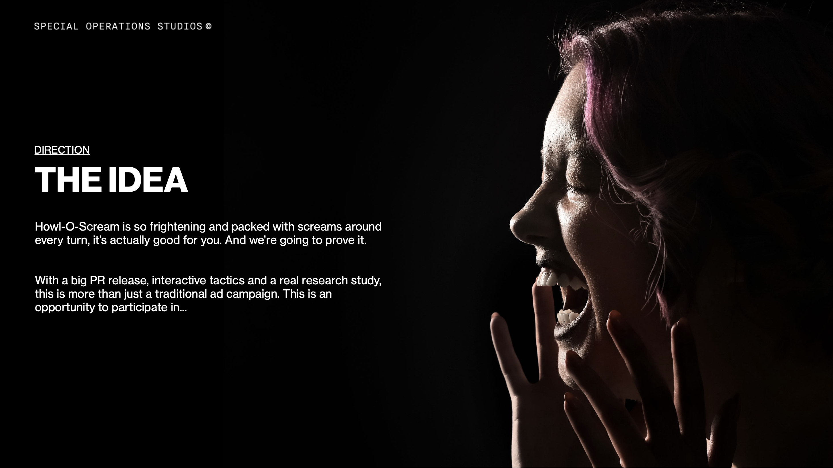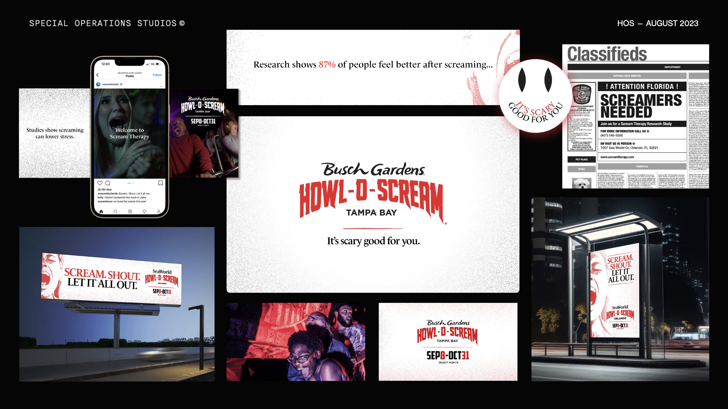 During my time at Special Operations Studios we were tasked to come up with a campaign for Busch Gardens & Seaworld that stood out from all other theme park Halloween events. The added layer of the challenge was to lead the campaign with tv spots leveraging existing footage from previous years of their Howl-O-Scream event. And of course, it all needed to be done in two weeks from brief-to-launch date. Needless to say, we needed a smart, simple idea that worked across all media channels and would be quick to produce.